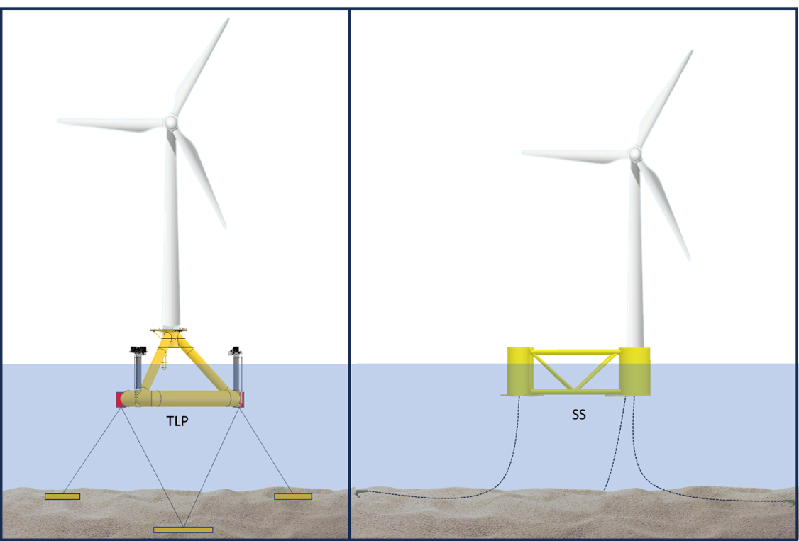 - Distinct stability philosophies (tension-leg vs column-stabilised)